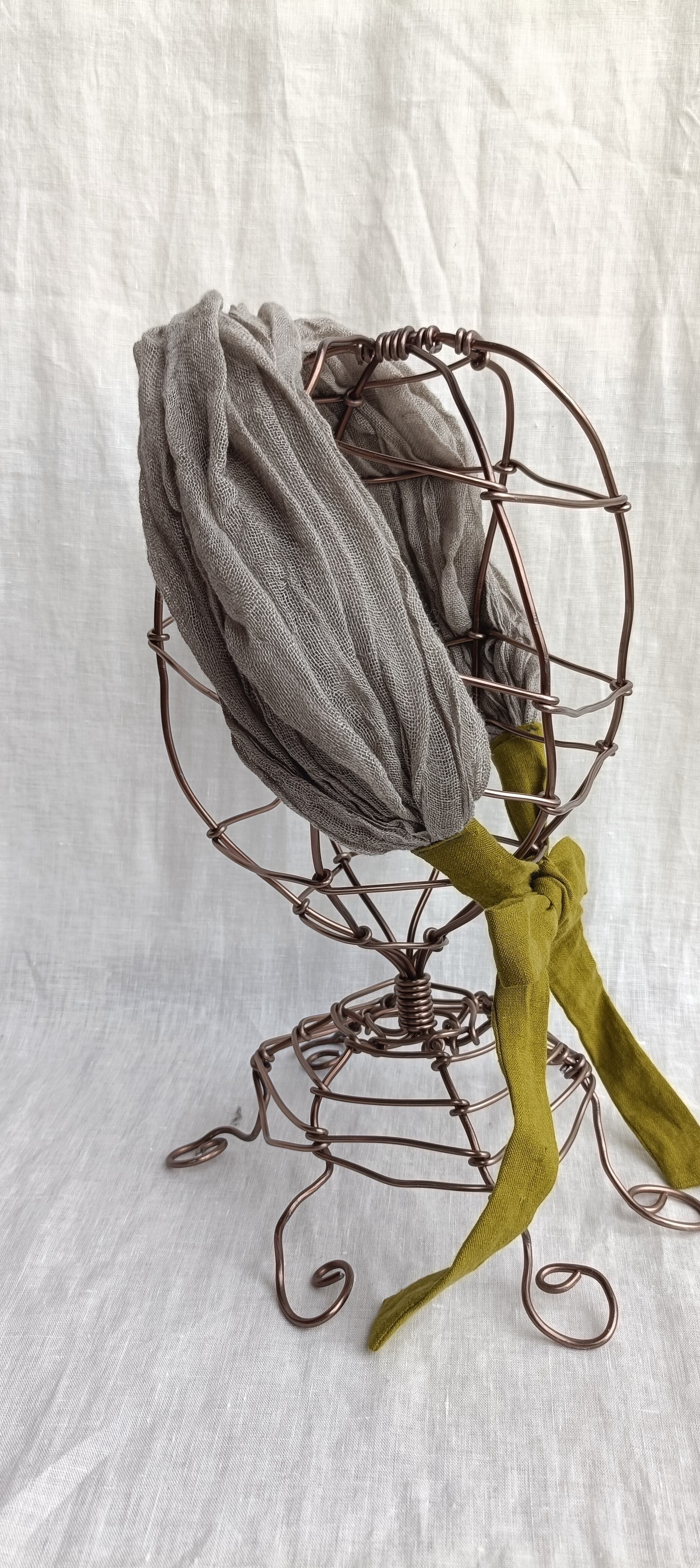 後ろで結ぶのでお好みのサイズで調節が可能です。